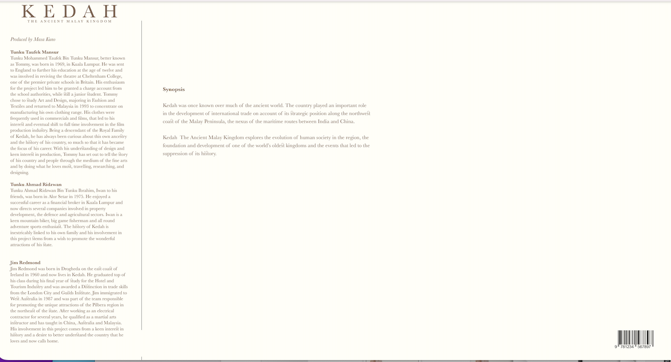 Kedah The Ancient Malay Kingdom explores the evolution of human society in the region, the foundation and development of one of the world's oldest kingdoms and the events that led to the suppression of its history.